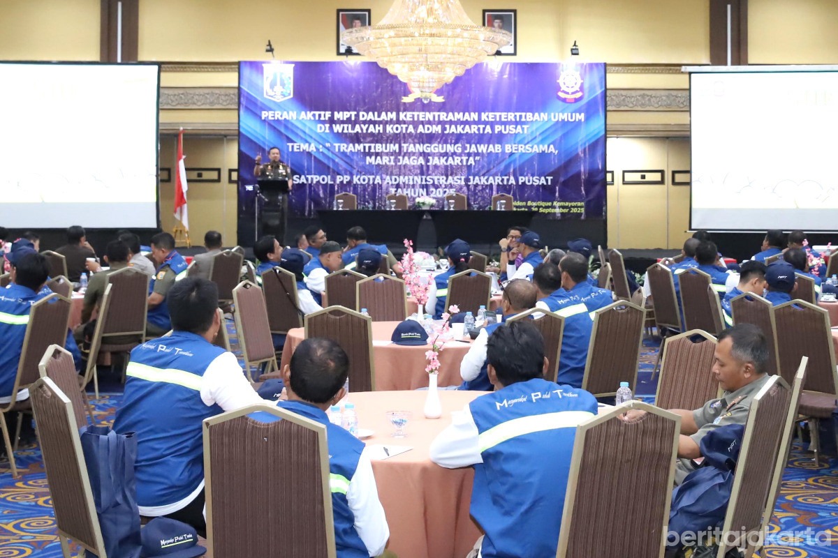 A total of 100 Central Jakarta residents, members of the Community for Public Order Awareness (MPT), took part in a socialization session on Regional Regulation No. 8 of 2007 concerning Peace and Public Order (Trantibum) on Monday (Sept 29). The program, framed as a Community Protection Empowerment activity, was organized by the Central Jakarta Civil Service Police Unit (Satpol PP) at the Golden Boutique Hotel ballroom in Kemayoran.