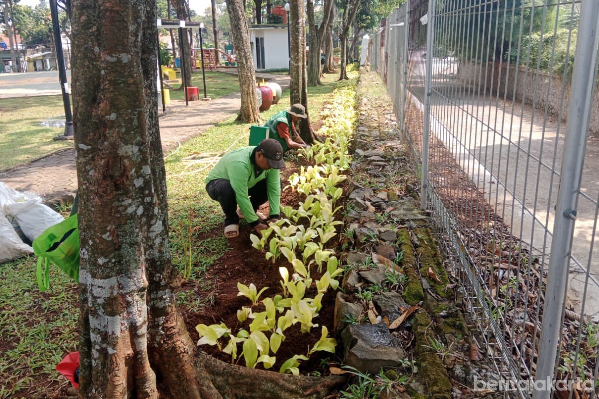 Flamboyan Park on Jalan Raya Cilangkap, RW 05, Kelurahan Cilangkap, Kecamatan Cipayung, East Jakarta, is undergoing a major renovation in preparation for 24-hour public access. About ten personnel from the Green Troops of the East Jakarta Parks and Urban Forest Agency (Tamhut) are involved, performing tasks ranging from painting fences and landscaping to repairing lights, trimming trees, and installing CCTV cameras. The 7.9-hectare park is being carefully reorganized to enhance accessibility, safety, and recreational facilities, including multipurpose courts, outdoor fitness areas, a children’s playground, and security posts.