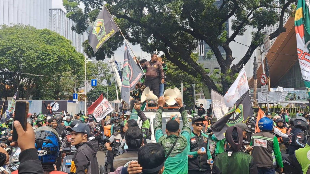 Para pengemudi ojol tersebut datang dari berbagai penjuru wilayah Jabodetabek. Sebagian dari mereka terlihat mengendarai motor sambil mengibarkan bendera komunitas dan menyalakan suar (flare) asap. Aparat keamanan dari TNI dan Polri juga terlihat berjaga ketat di sekitar lokasi untuk mengamankan jalannya aksi.