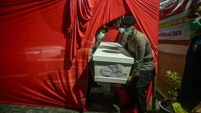 Jenazah korban kemudian dibawa ke RS Bhayangkara Surabaya untuk proses identifikasi oleh DVI Polda Jatim. Kini dengan temuan itu, per Senin kemarin, total korban yang berhasil ditemukan berjumlah 167 orang. Terdiri dari 104 dalam kondisi selamat, 63 meninggal dunia—di mana enam di antaranya masih berupa potongan tubuh.