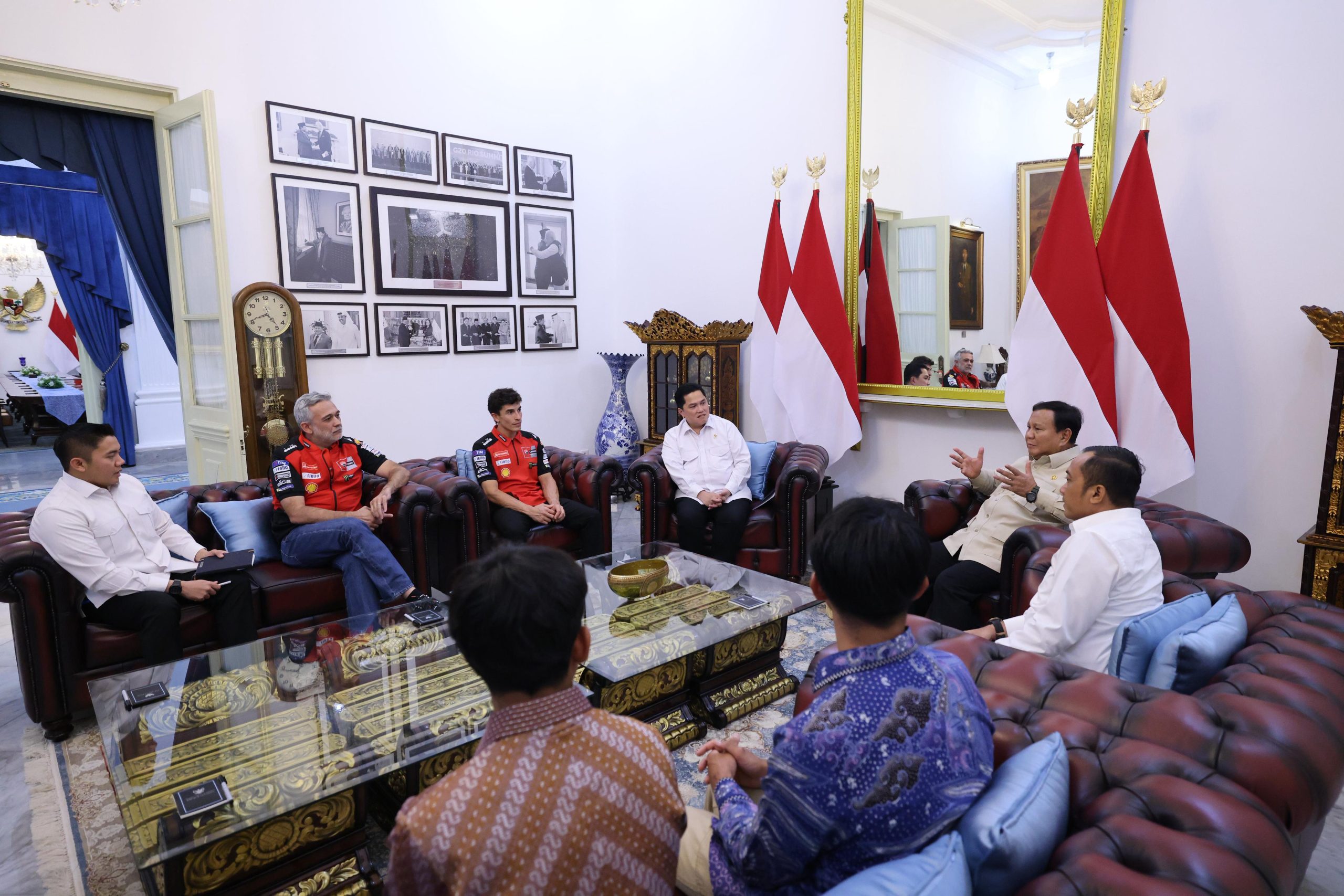 Presiden Republik Indonesia Prabowo Subianto menerima kunjungan juara dunia MotoGP, Marc Márquez, di Istana Negara Jakarta pada Selasa (30/9). Pertemuan tersebut berlangsung hangat, menjadi simbol dukungan Indonesia terhadap perkembangan balap motor dunia dan penguatan sport tourism.
