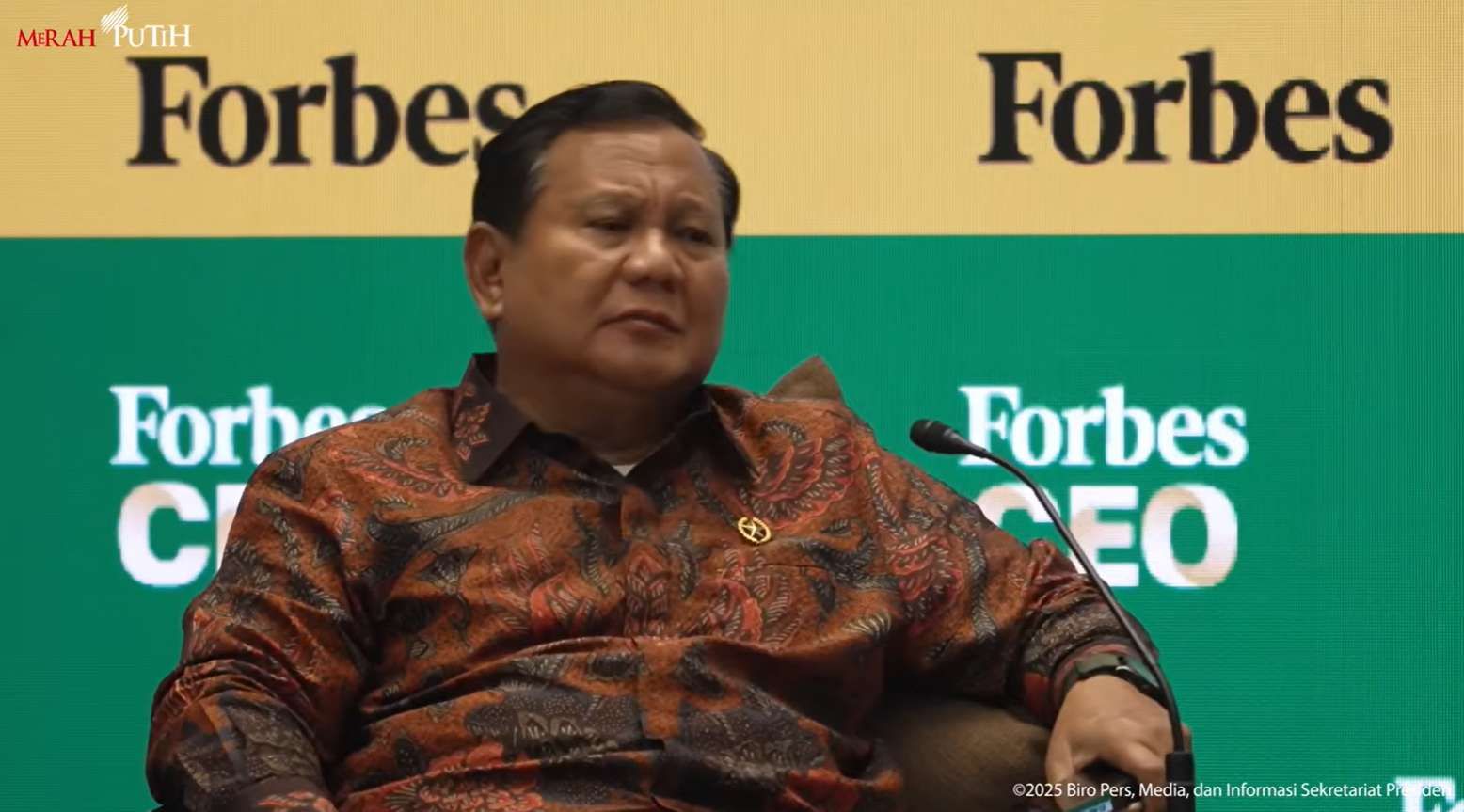 Presiden Prabowo Subianto, menghadiri jamuan makan malam bersama Chairman sekaligus Editor in Chief Forbes, Malcolm Stevenson Jr. atau Steve Forbes, di Hotel St. Regis, Jakarta, tadi malam. Acara ini menjadi penutup rangkaian Forbes Global CEO Conference 2025 yang berlangsung sejak 14 Oktober 2025.