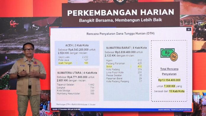 Kepala Pusat Data, Informasi, dan Komunikasi Kebencanaan Badan Nasional Penanggulangan Bencana, Abdul Muhari, menjelaskan bahwa bank penyalur akan mendatangi langsung dusun, desa, hingga titik pengungsian. Pemerintah juga tengah merekapitulasi proporsi antara Hunian Sementara, Hunian Tetap, dan DTH sesuai tingkat kerusakan rumah serta pilihan warga.