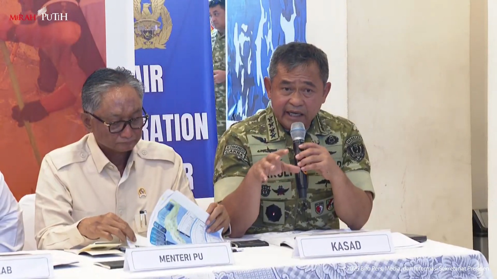 Kepala Staf TNI Angkatan Darat (KSAD) Jenderal Maruli Simanjuntak meminta media mendukung anggota TNI yang tengah bekerja menangani bencana di Aceh, Sumatera Utara, dan Sumatera Barat. Ia juga meminta semua pihak kompak mendukung upaya pemerintah memulihkan kondisi pascabencana dengan tepat dan cepat.