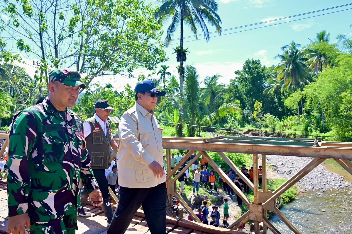 Presiden RI Prabowo Subianto melanjutkan peninjauan langsung ke Kabupaten Padang Pariaman, Sumatera Barat, Kamis (18/12). Ia mengecek Jembatan Padang Mantuang (jembatan bailey) yang telah dibangun pascabencana banjir dan longsor pada akhir November lalu.
