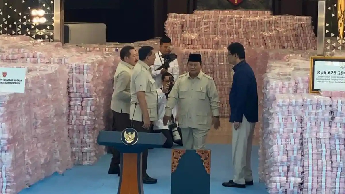 Ketiganya sempat berbincang di hadapan tumpukan uang tunai senilai Rp6,6 triliun yang menjadi simbol hasil penagihan dan penyelamatan keuangan negara. Acara tersebut turut dihadiri sejumlah pejabat tinggi negara, di antaranya Menteri Pertahanan Sjafrie Sjamsoeddin, Menteri Keuangan Purbaya Yudhi Sadewa, Kepala BPKP Yusuf Ateh, Kapolri Jenderal Listyo Sigit Prabowo, Menteri Kehutanan Raja Juli Antoni, serta Kepala BPI Danantara Rosan Roeslani.