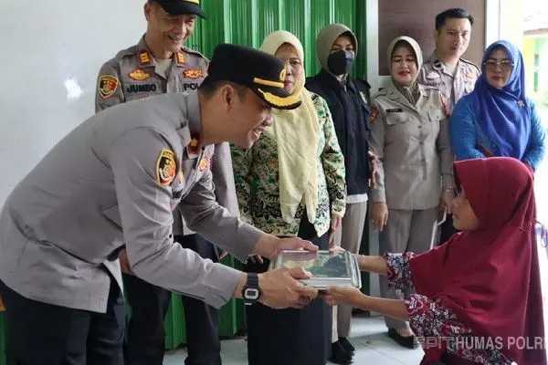 Wakil Kepala Kepolisian Resor Tanggamus, Komisaris Polisi Gigih Andri Putranto, secara simbolis menyerahkan bantuan Program Makan Bergizi (MBG) kepada pelajar di Kecamatan Pulau Panggung, Kabupaten Tanggamus.