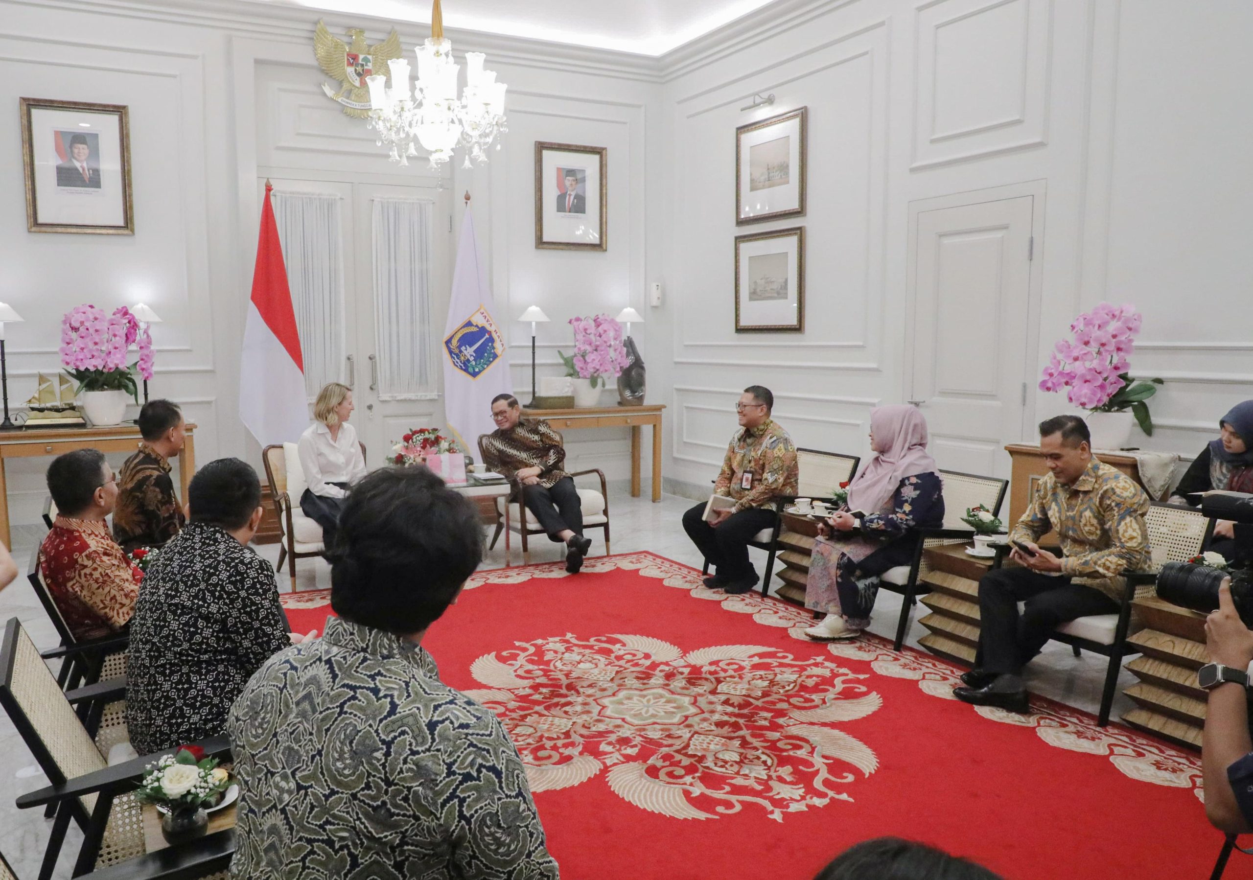 Gubernur DKI Jakarta, Pramono Anung, menerima kunjungan Global Head and Vice President of Government Affairs and Public Policy YouTube, Leslie Miller, serta Kepala Hubungan Pemerintah dan Kebijakan Publik YouTube Indonesia dan Asia Tenggara, Danny Ardianto, di Balai Kota Jakarta, pada Kamis (29/1).