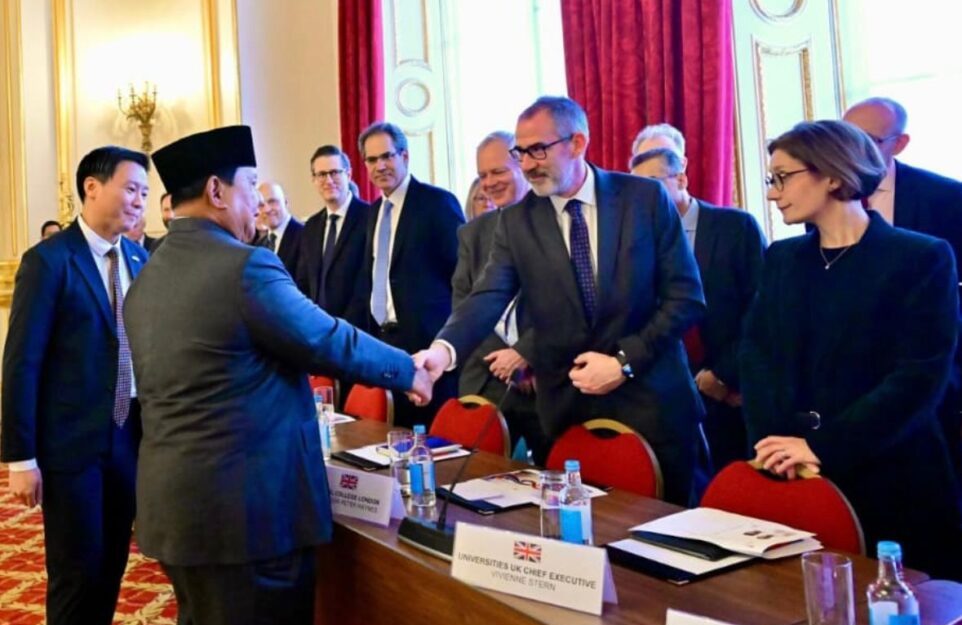 Sekretaris Kabinet (Seskab), Teddy Indra Wijaya, menjelaskan bahwa Presiden Prabowo bertemu langsung dengan para profesor dari universitas-universitas riset terkemuka Inggris, termasuk King’s College London, University of Oxford, Imperial College London, dan University of Edinburgh, bersama 20 universitas lainnya.