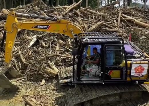 Secara bertahap, anggota TNI membersihkan material tersebut. Ekskavator tampak mengeruk potongan kayu, sementara buldoser meratakan dan mengeraskan permukaan tanah. Memasuki malam hari, mesin ekskavator dan buldoser tetap berderu. Dengan penerangan seadanya, alat-alat berat itu tetap bekerja agar pembersihan area bisa segera selesai.