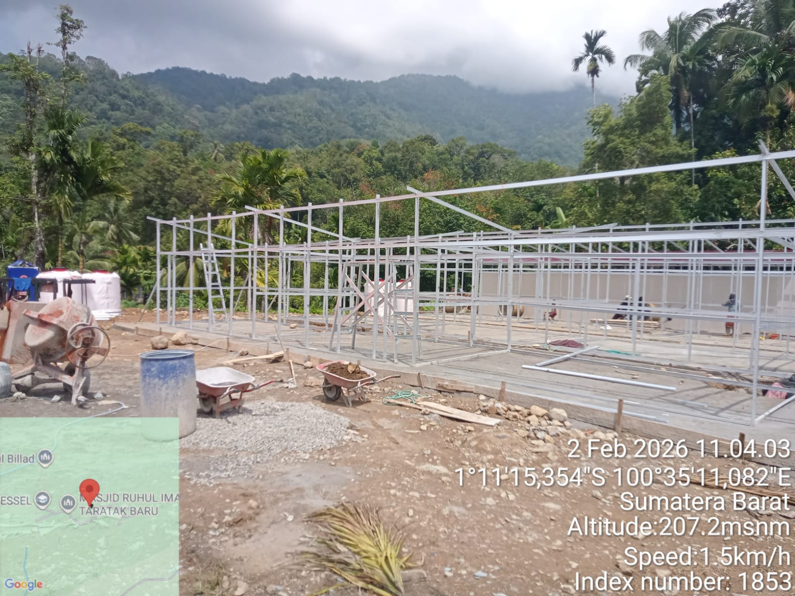 Selain unit yang telah rampung, satu unit huntara di Kabupaten Pesisir Selatan, tepatnya di Kecamatan IV Nagari Bayang Utara, Nagari Puluik-Puluik, masih dalam tahap pembangunan dengan progres sekitar 45 persen. Rangka besi bangunan telah berdiri, lahan sudah diratakan, dan sejumlah material bangunan telah tersedia di lokasi guna mempercepat pengerjaan.