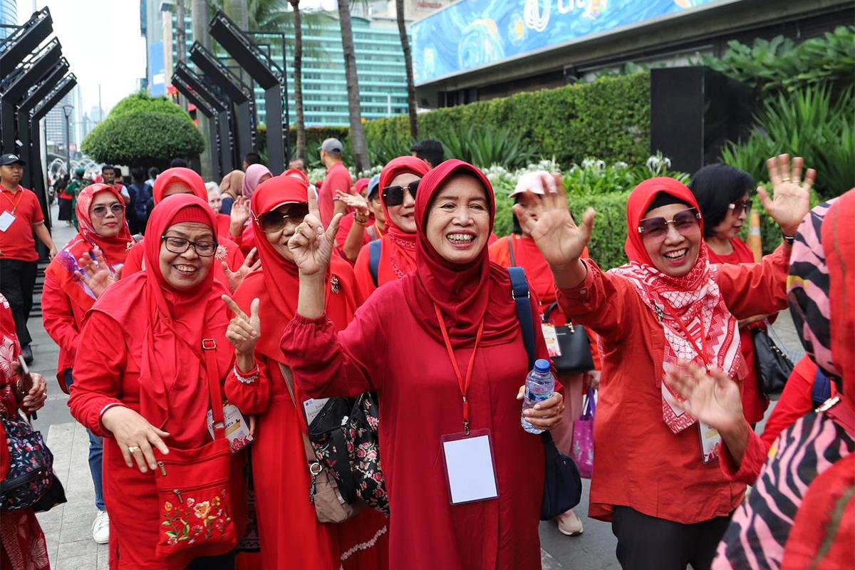 During the event, elderly women from various areas across DKI Jakarta took part in a group walk while enjoying the Lunar New Year decorations around Bundaran HI. The festive ornaments, typically associated with Chinese New Year celebrations, created a vibrant atmosphere in the city center. The activity provided participants with both recreational exercise and an opportunity to experience the cultural ambiance firsthand. It underscored the use of public spaces as inclusive venues for community bonding.