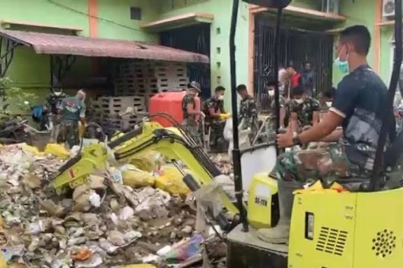 Di Kecamatan Karang Baru, Kabupaten Aceh Tamiang, prajurit TNI membersihkan instalasi farmasi yang terdampak banjir dengan mengerahkan alat berat berupa ekskavator kecil serta pengerjaan manual. Lumpur dan sampah plastik yang terbawa arus banjir diangkat agar fasilitas kesehatan tersebut kembali berfungsi. Upaya serupa dilakukan di berbagai wilayah Aceh dengan menyasar tempat ibadah. Di Kabupaten Pidie dan Bireuen, prajurit membersihkan dan mengecat kembali meunasah agar dapat digunakan masyarakat untuk beribadah.