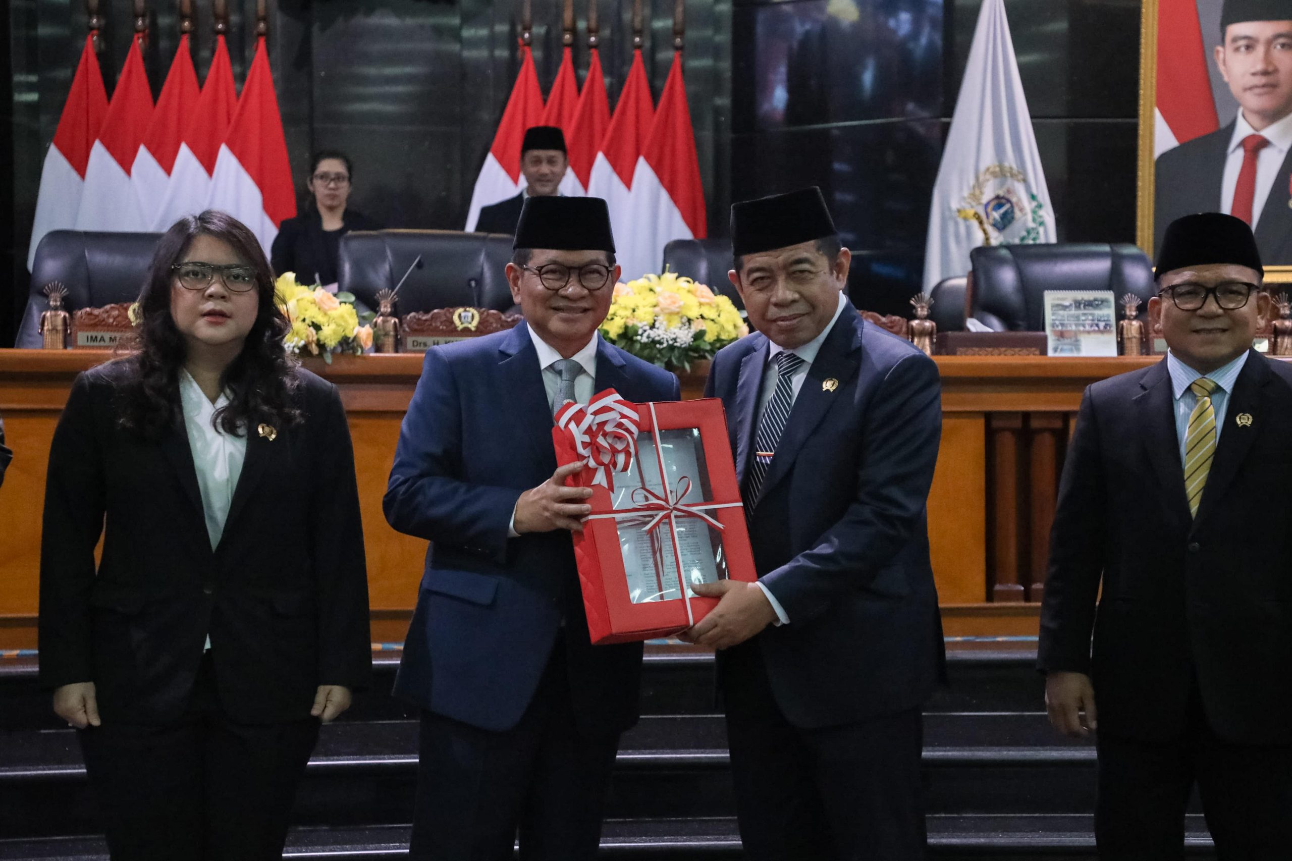 Gubernur DKI Jakarta, Pramono Anung, menyampaikan dua Rancangan Peraturan Daerah (Ranperda) dalam rapat paripurna Dewan Perwakilan Rakyat Daerah (DPRD) Provinsi DKI Jakarta di Gedung DPRD DKI Jakarta, Kebon Sirih, Jakarta Pusat, pada Senin (2/3). Dua ranperda tersebut adalah Ranperda tentang Pembangunan Keluarga dan Ranperda tentang Rencana Perlindungan dan Pengelolaan Lingkungan Hidup (RPPLH).