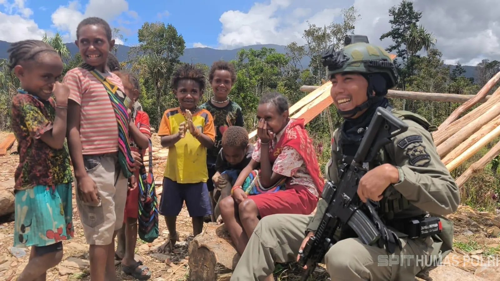 Personel dan Anak-Anak Papua Tertawa Bersama di Sugapa