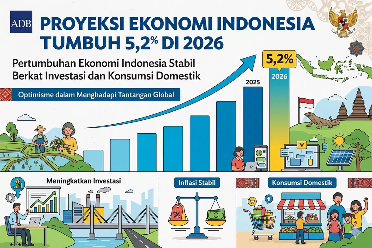Asian Development Bank (ADB) memperkirakan ekonomi Indonesia tumbuh stabil 5,2 persen pada 2026 dan 2027. Demikian diungkapkan dalam laporan Asian Development Outlook April 2026: The Middle East Conflict Challenges Resilience in Asia and The Pacific.