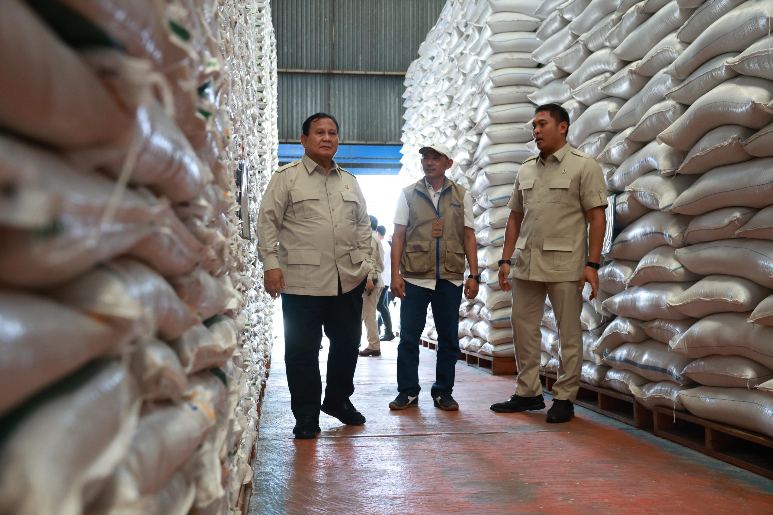 Setibanya di lokasi, Prabowo meninjau kondisi cadangan pangan nasional. Prabowo ingin memastikan stok beras aman dan siap disalurkan kepada masyarakat.