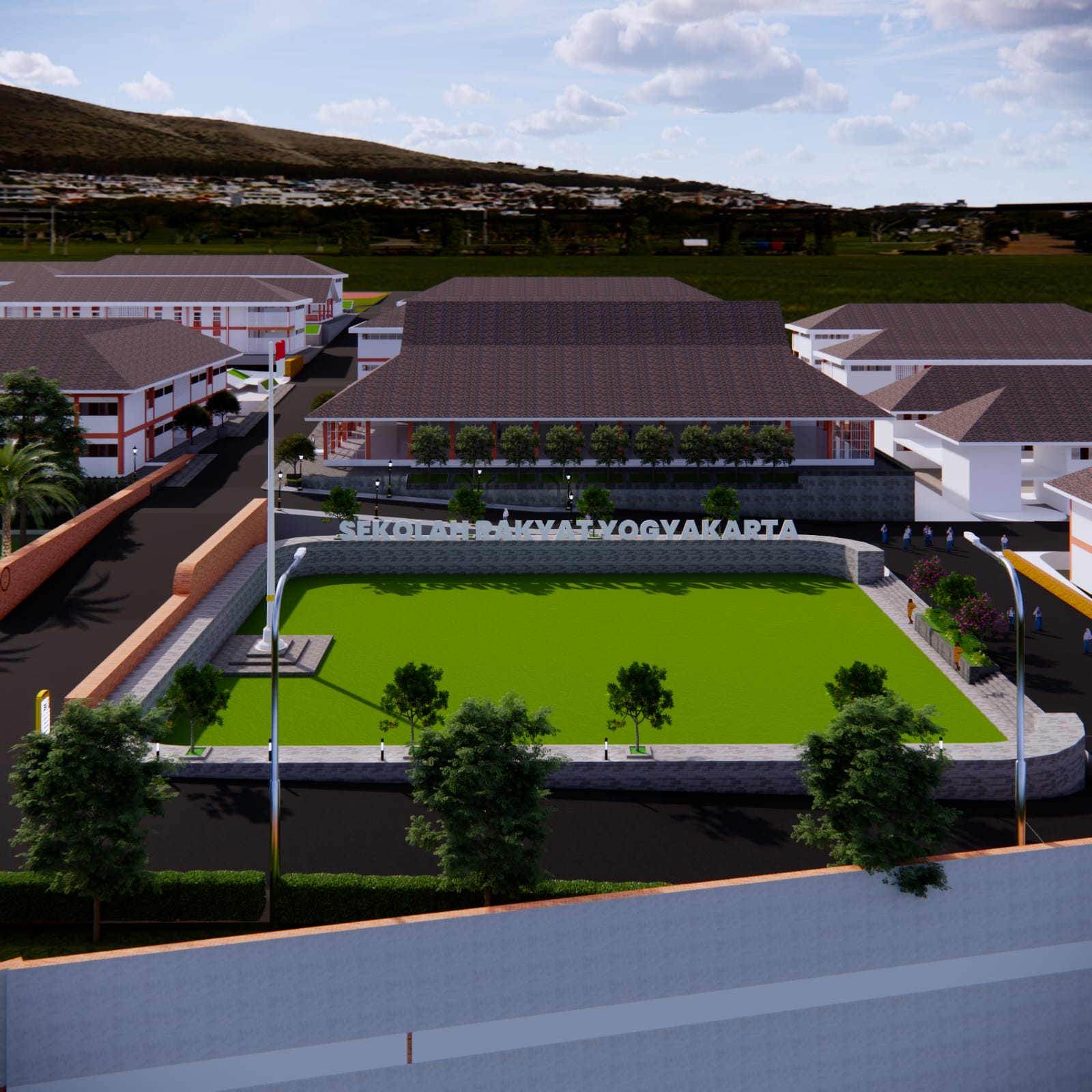 Sekolah Rakyat Kulon Progo dirancang sebagai kawasan pendidikan terpadu dengan berbagai fasilitas modern, mulai dari ruang kelas berbasis teknologi, laboratorium, perpustakaan, hingga pusat pembelajaran digital. Fasilitas pendukung seperti asrama, klinik, kantin, sarana olahraga, dan ruang terbuka hijau juga disiapkan.