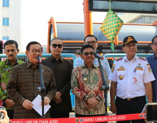 Gubernur DKI Jakarta, Pramono Anung, meresmikan layanan Transjabodetabek rute Blok M–Bandara Soekarno-Hatta (SH2) di Terminal Blok M Jalur 6, Melawai,.