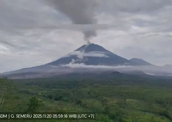 Gunung Semeru di Kabupaten Lumajang, Jawa Timur, mengalami erupsi dan memuntahkan awan panas guguran sejauh 14 kilometer, Rabu (19/11) kemarin. Status Gunung Semeru