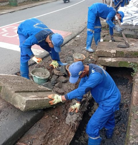 Pasukan Biru Perbaiki Saluran Ambruk di Jalan Raya Centex, Tujuh Personel Dikerahkan