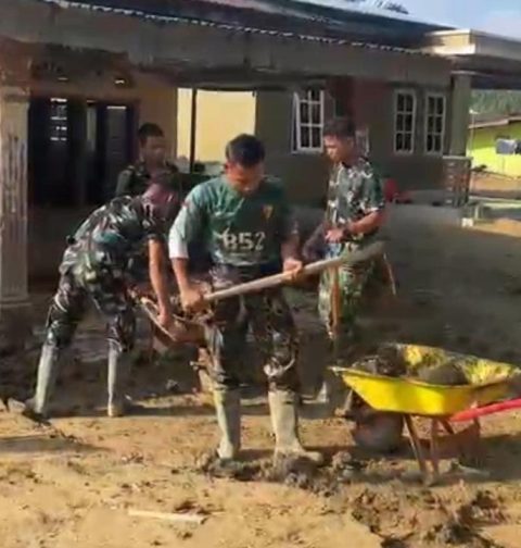 Prajurit TNI Bersihkan Rumah Warga di Sumut dengan Sekop dan Cangkul