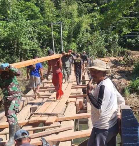 TNI Prioritaskan Jembatan Gantung untuk Akses Sekolah Anak-Anak di Pedalaman
