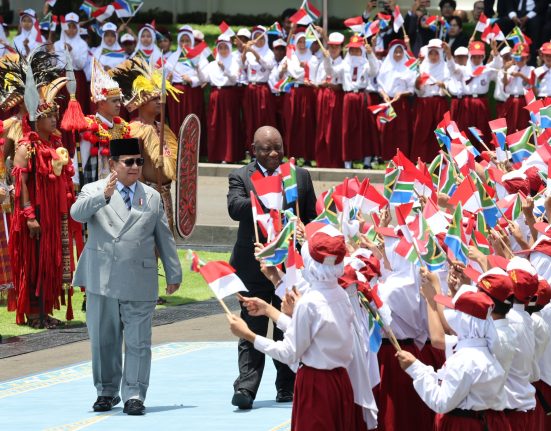 Prabowo Sambut Kedatangan Presiden Afrika Selatan Ramaphosa di Indonesia