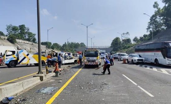 Truk Derek Jasa Marga Dihantam Dua Bus di Cipularang, Sopir Alami Luka Berat