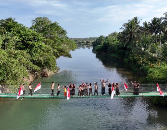Jembatan gantung yang menghubungkan Kampung Punaga Jolok dan Kampung Baru, Desa Mandala Kasih, Kecamatan Pameungpeuk, Kabupaten Garut, Jawa Barat, mempermudah aktivitas warga, khususnya.