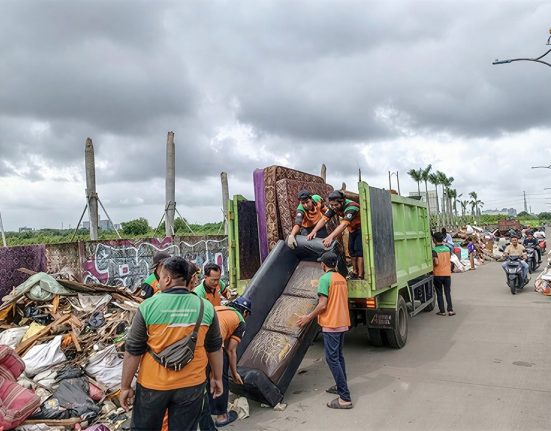 The West Jakarta Environmental Agency moved quickly to clear debris along Jalan Kembangan Baru after floodwaters receded from the area. The operation followed.