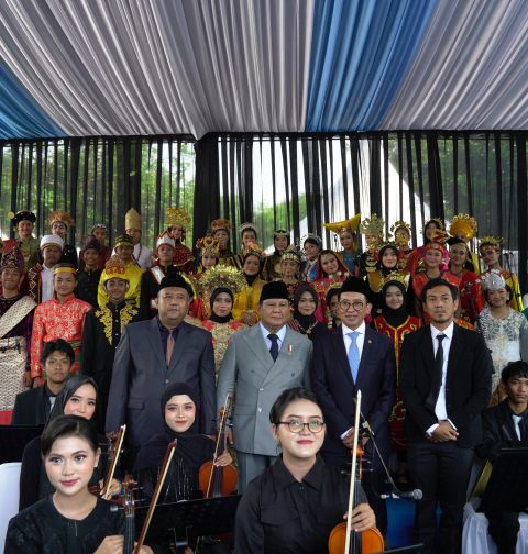 Momen Hangat, Prabowo Berfoto Bersama Tim Paduan Suara di Upacara Hari Kesaktian Pancasila