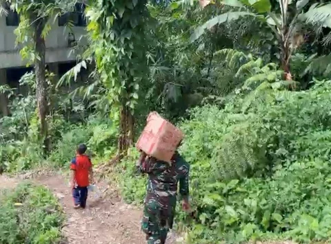 Pastikan Bantuan Sampai ke Desa, TNI Jalan Kaki Distribusikan Logistik Warga Terdampak Bencana