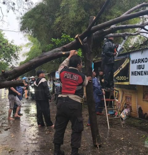 Hujan Reda, Polisi dan Warga Bersihkan Pohon Tumbang
