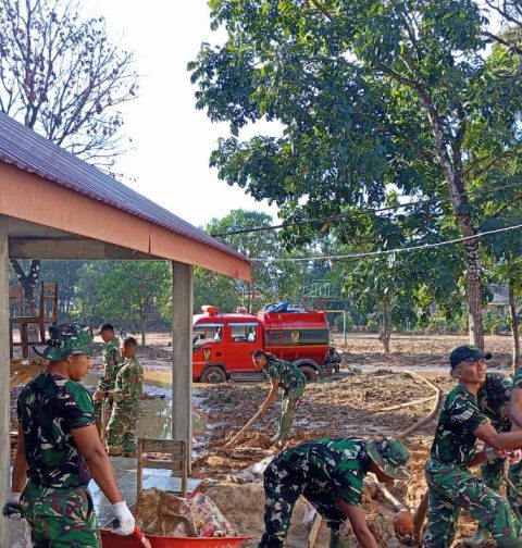 TNI dan Warga Terus Bersihkan Lumpur dan Material Kayu di Sumatra Utara