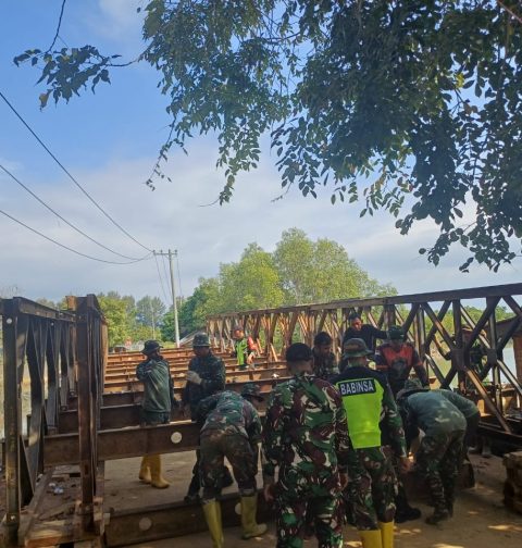 Percepatan Pemulihan Akses, TNI Bersama Warga Bangun Jembatan di Aceh