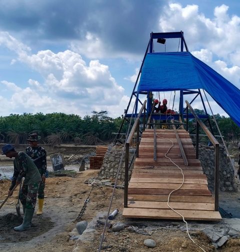 TNI Percepat Pembangunan Jembatan Gantung, Desa Lubuk Sidup Segera Terhubung