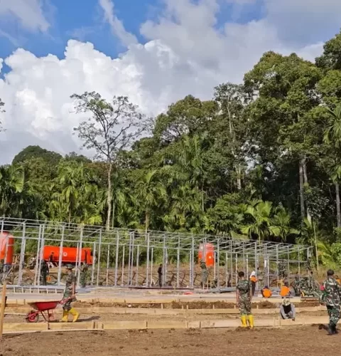 Hunian Sementara di Sumbar Mulai Terbentuk, Rangka Bangunan Sudah Terpasang