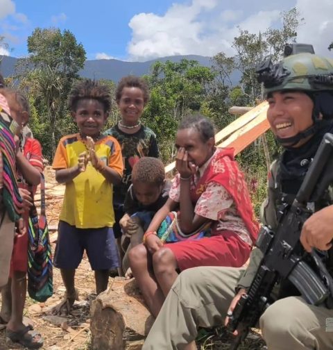 Personel dan Anak-Anak Papua Tertawa Bersama di Sugapa