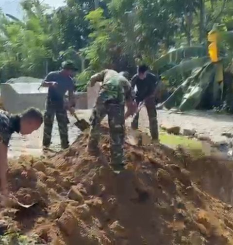 TNI Bersama Warga Gotong Royong Percepat Pembangunan Jembatan Gantung di Aceh