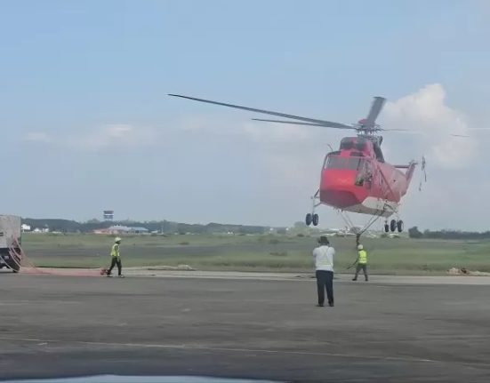Helikopter Sikorsky milik Badan Nasional Penanggulangan Bencana (BNPB) berhasil mengirim genset 250 kWh ke Rumah Sakit Umum Daerah (RSUD) Takengon.