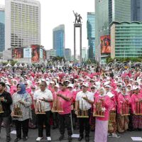 Wakil Gubernur (Wagub) DKI Jakarta, Rano Karno, menghadiri peringatan Hari Angklung Sedunia ke-15 di kawasan Bundaran HI, Jakarta Pusat, pada Minggu (16/11). Acara bertema “Happy, Healthy, and Harmony with Angklung” tersebut diinisiasi oleh Forum Komunikasi Lanjut Usia (FKLU).