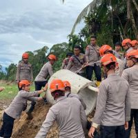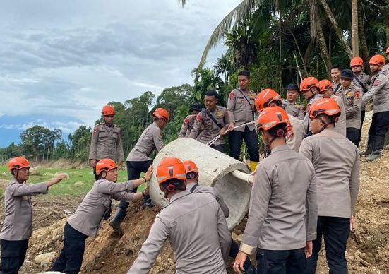 Anggota Brimob Gotong Royong Perbaiki Jalan dan Gorong-Gorong di Kabupaten Agam